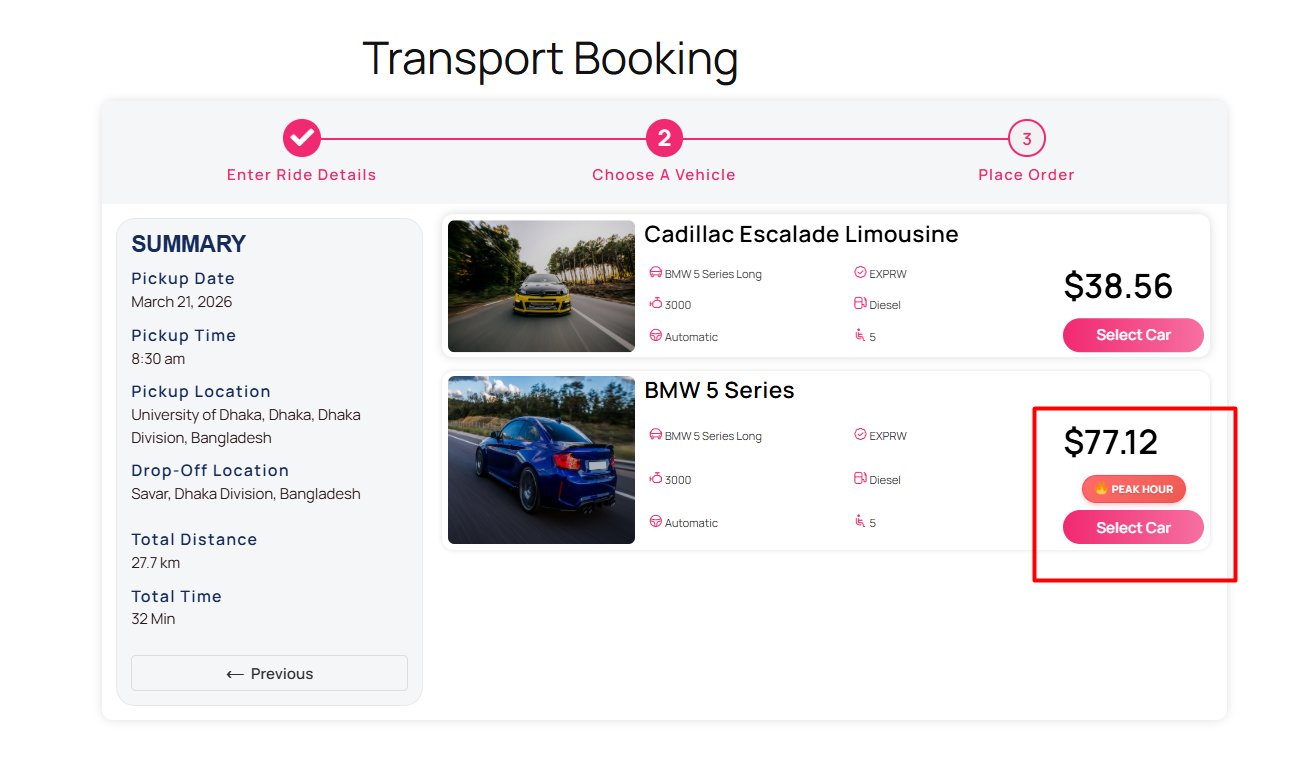 You can find more details in the video. Check out how to add a peak hour price in a taxi booking plugin.