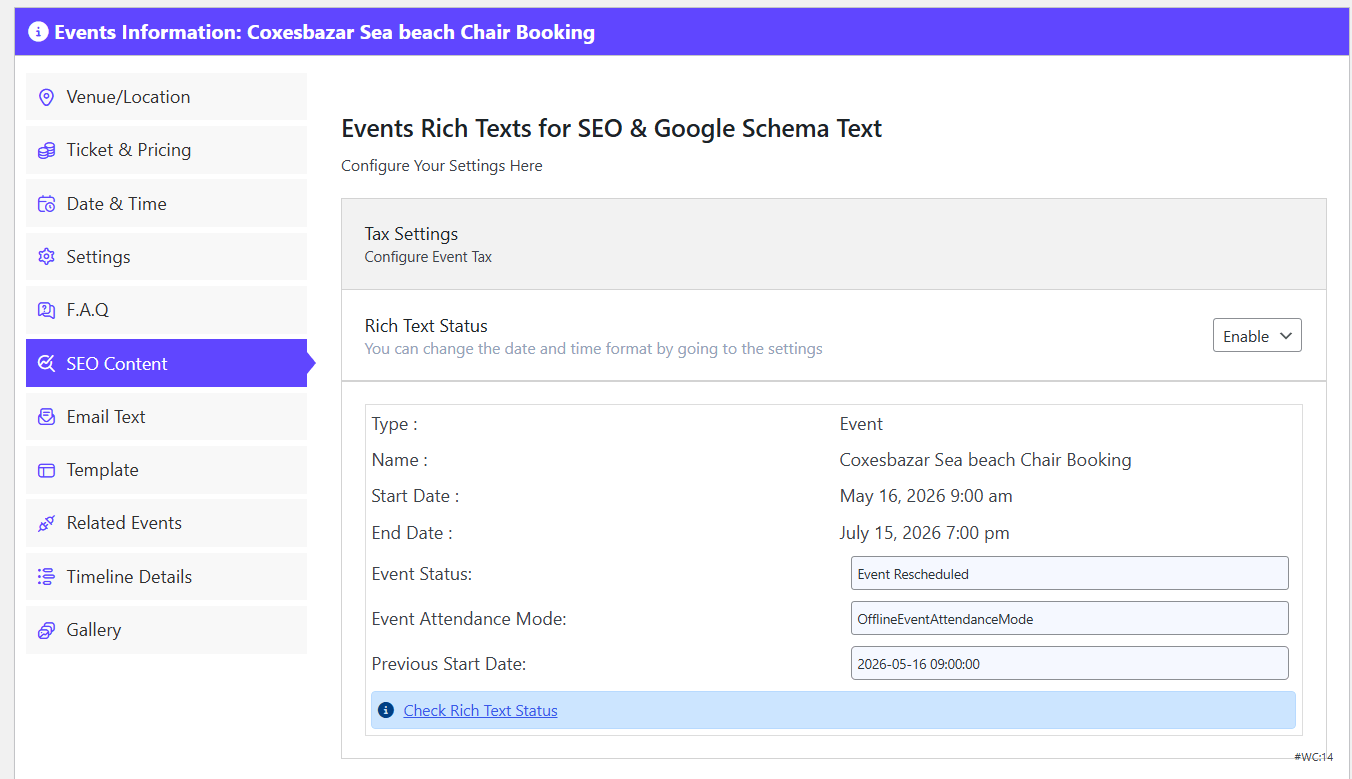 Then click on the SEO Content option to set your schema, which plays a role in SEO.