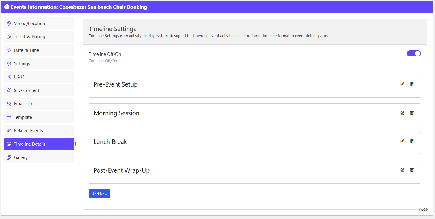 Then add the Timeline details of your event.