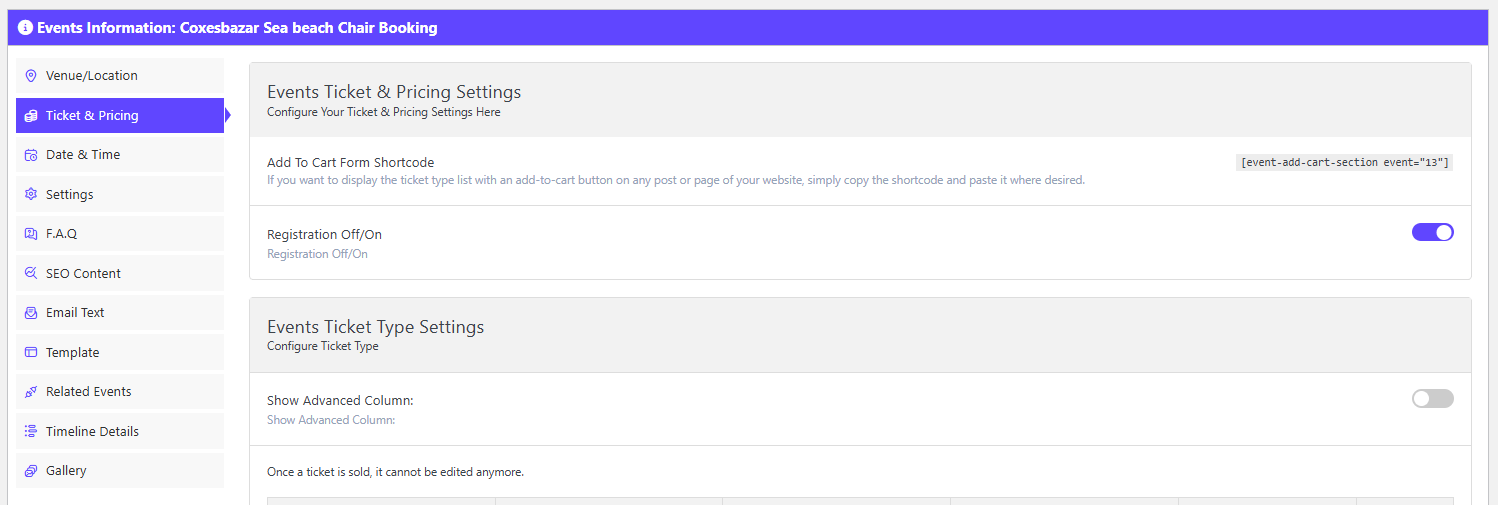 Also, you can toggle the advanced column to show the ticket selling date and time.