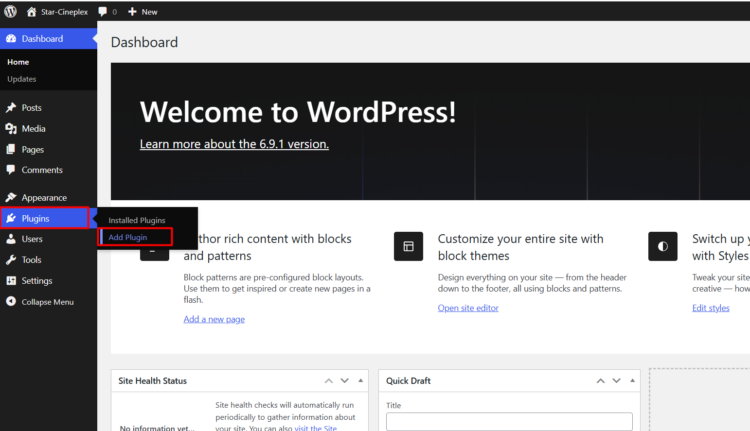 We’ll start things off with the WooCommerce Event Manager Pro – WpEvently plugin. To do that, you have to navigate your mouse pointer to the plugins section from the Dashboard.