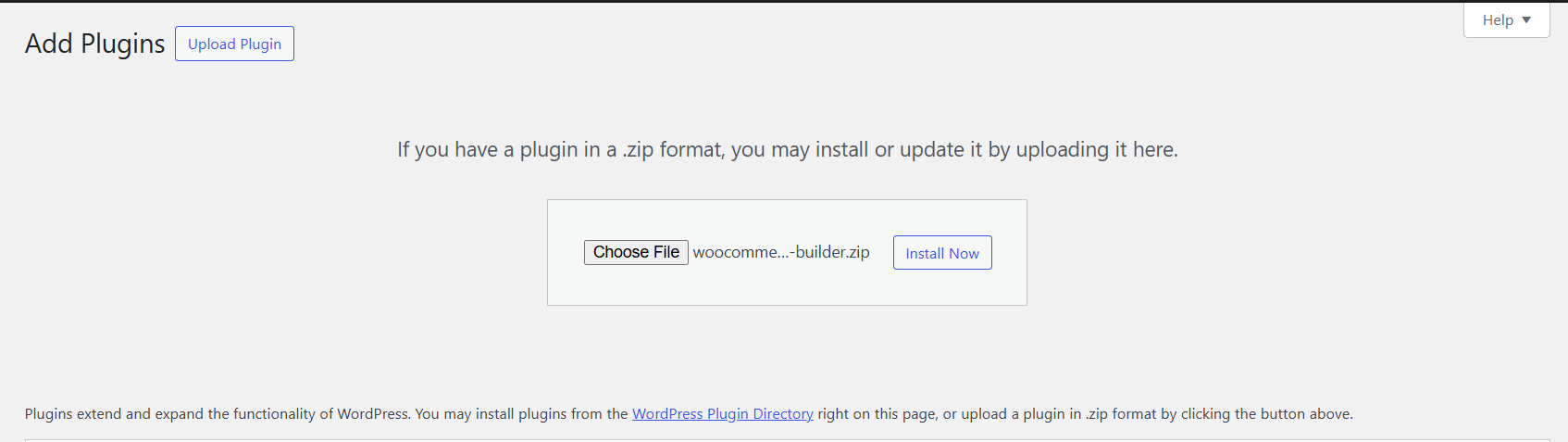 Click on the “Upload Plugin” button from the Plugins section of your WP Dashboard. Then, Click on “Choose File” and select the downloaded ZIP file from your computer. For WpEvently Pro, you will get two addons, the Form Builder addon and the PDF Ticket addon.