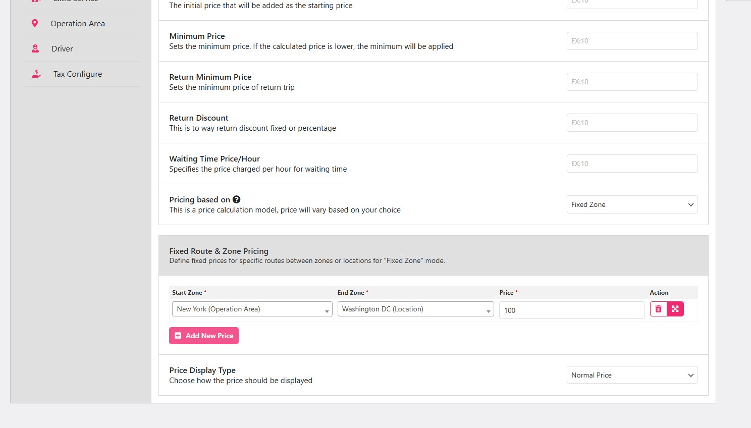 - Manual Pricing Logic: For non-map based fixed pricing, you can set specific “point-to-point” rates (e.g., Airport to Downtown) using location slugs and the