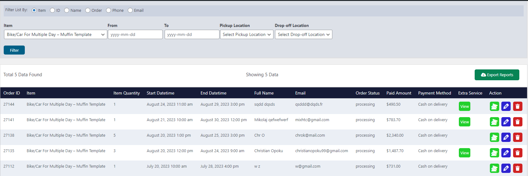 - Streamlined Dashboard: Easily filter and manage orders by item, date, or ID. Customize columns, edit bookings on the fly, or export data to CSV for detailed analysis.